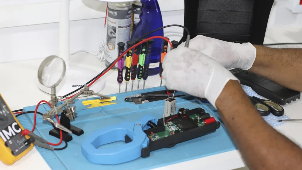 Os serviços de reparo são executados por profissionais qualificados e com larga experiência em conserto de instrumentos eletrônicos. O nosso laboratório possui uma excelente infraestrutura que possibilita a realização de diversos tipos de testes e ensaios em equipamentos utilizados nas áreas de telecomunicações, elétrica, eletrônica, mecânica, construção-civil, entre outras áreas.