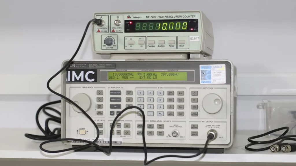 Ajuste e verificação de dispositivos de medição de tempo e frequência para máxima precisão.